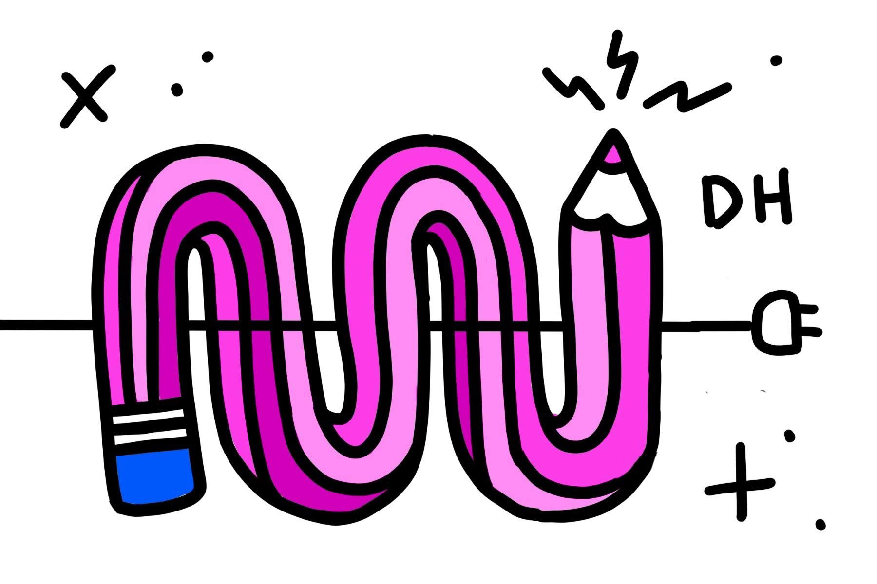 Keeping the color pink as a central part of DubHacks was important, but we wanted to steer the design in a different route this year, pushing for more experimentation We wanted to explore texture, dimensionality, and a dark theme in this initial stage. However, we decided that this route was too abstracted and aimed to go for a more simplified and representational route.